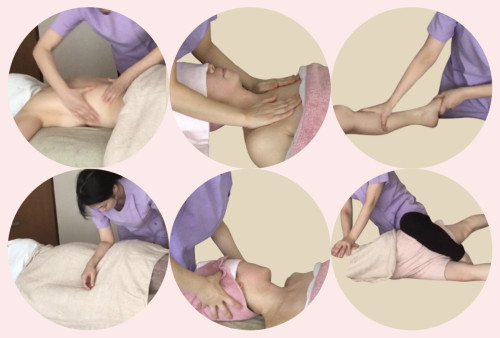 施術箇所:頭、首、肩、デコルテ、バスト、お腹、太もも、脚、足裏、背中、腰、ヒップ、腕、手